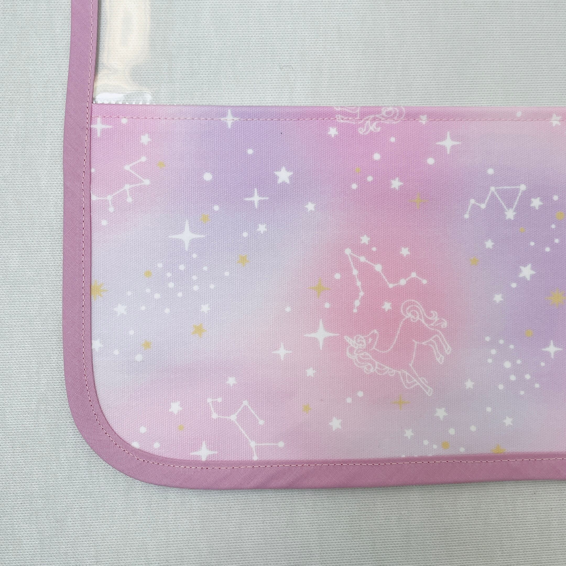 ラミネート生地:星座&ユニコーン柄(ピンク薄紫)